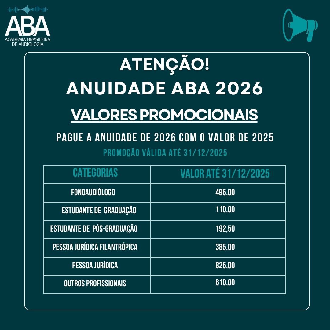 • PIX: aba@audiologiabrasil.org.br a confirmação do recebimento será no dia seguinte da transação.