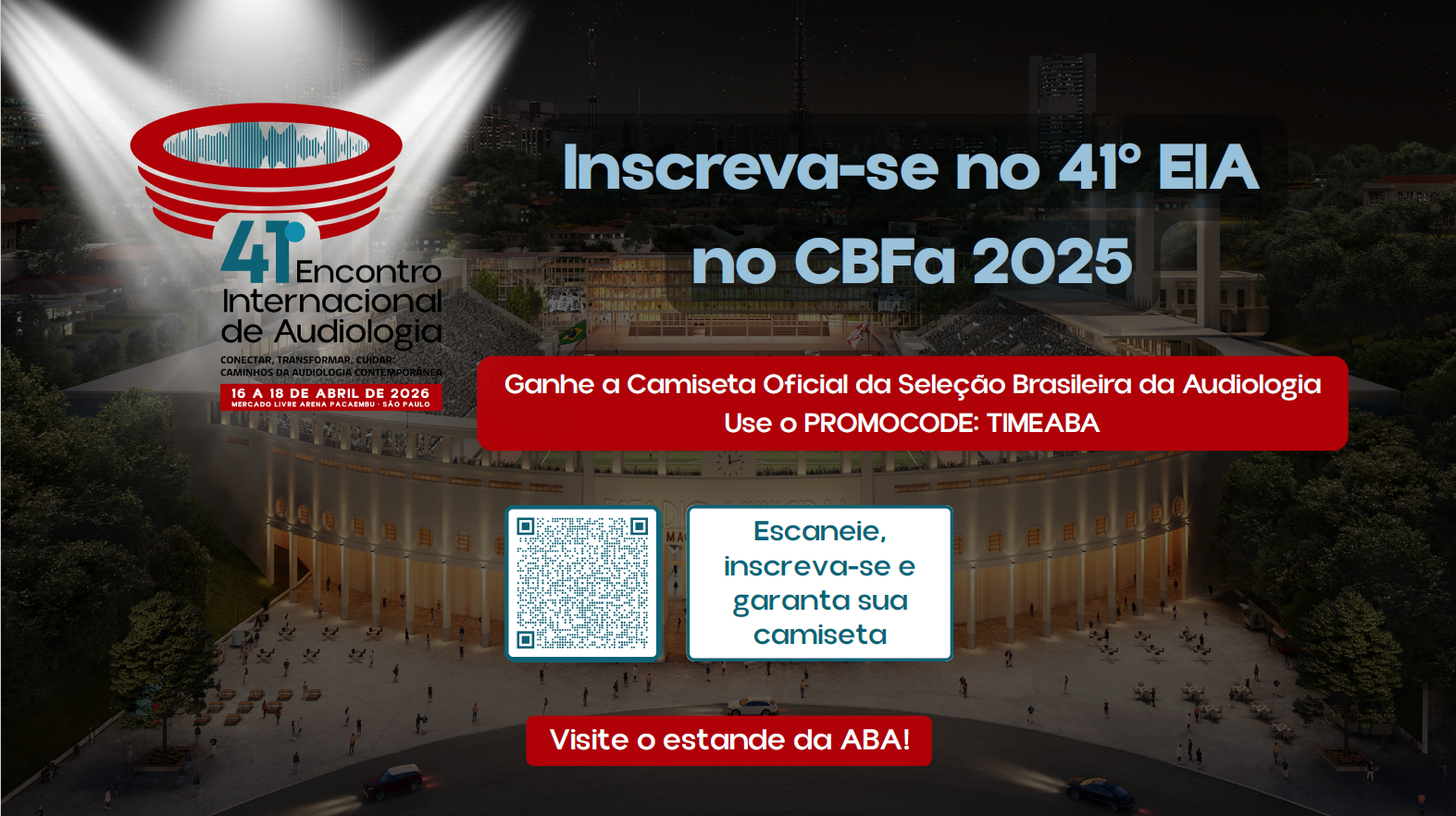 Menu principal ABA ABA Institucional Institucional Quem SomosMissãoObjetivosHistórico Gestões Gestões Gestão atual Gestão atual Membros da diretoriaConselho FiscalComissão de Ensino e PesquisaComitê de novos talentos Representações Regionais Representações Regionais Representantes das Seções RegionaisHistórico das Representações RegionaisVigênciaDinâmica de TrabalhoDinâmica de trabalho e equipeMetas e açõesAgenda de ReuniõesHistórico das gestões Certificação ABA Certificação ABA Certificacao EditaisCertificaçãoCertificação LoginFonoaudiólogos Tutores e Fonoaudiólogos Certificados Prêmios e Homenagens Prêmios e Homenagens Mérito em AudiologiaNotícias Eventos Eventos EIA - HistóricoEIA - Edição AnterioresEventos Parceiros da ABADivulgue o seu Evento Cursos Cursos Cursos OnlineCursos Promovidos pela ABACursos InternacionaisCertificados de Cursos EaDFóruns Publicações Publicações LivrosPeriódicosAtualiza ABA Associe-se Associe-se BenefíciosCategorias de AssociaçãoPrograma Fidelidade ABAInvestimentoInstruçõesFICHA DE CADASTRO Para associados Para associados Estatuto Legislação Legislação LeisResoluçõesÁrea do associado